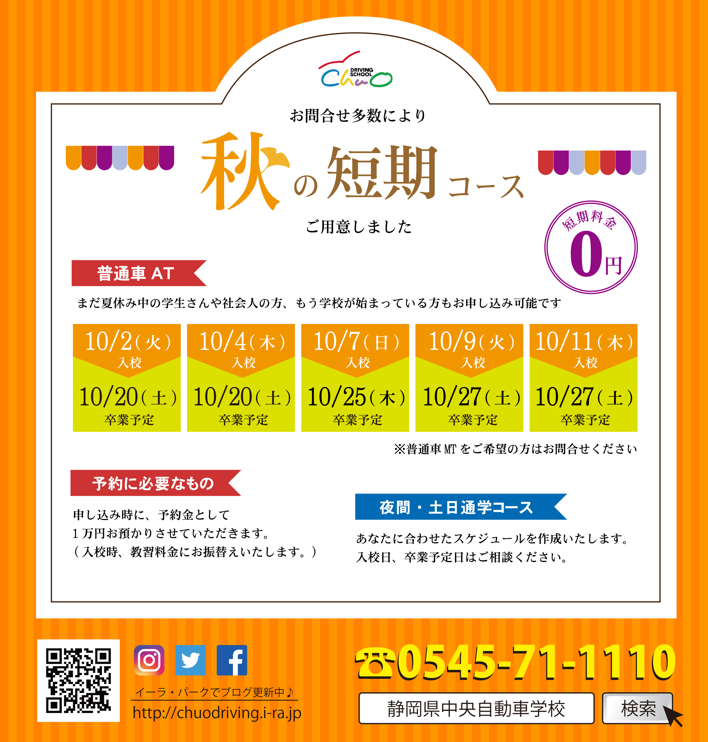お問い合わせ多数により秋の短期コースをご用意しました!!