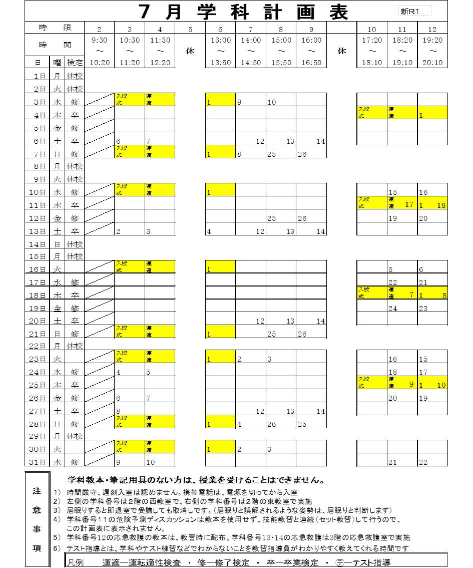 入校される方は最初に入校説明、運転適性検査、学科1を受けていただきます。