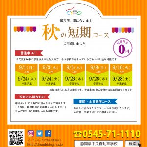 秋の短期コース 好評受付中!
