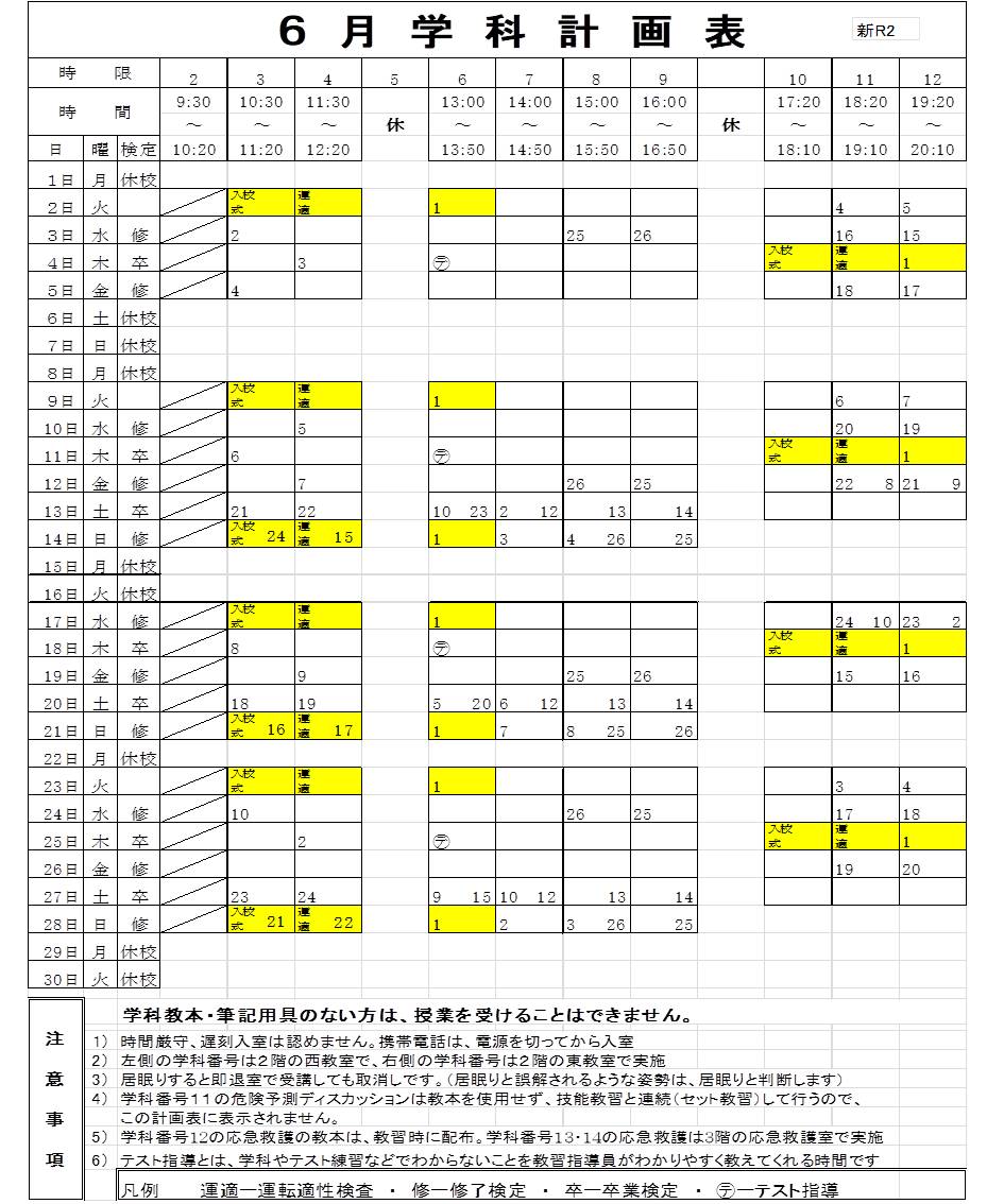 6月の学科計画表です。