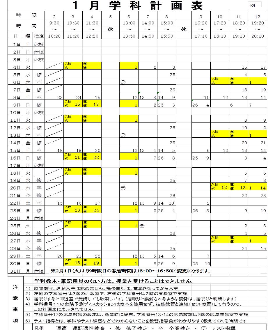 入校される方は最初に入校説明、運転適性検査、学科1を受けていただきます。