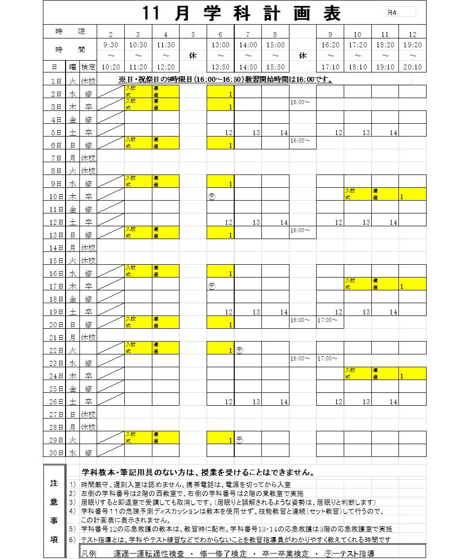 最初に入校説明、運転適性検査、学科1を受けていただきます。