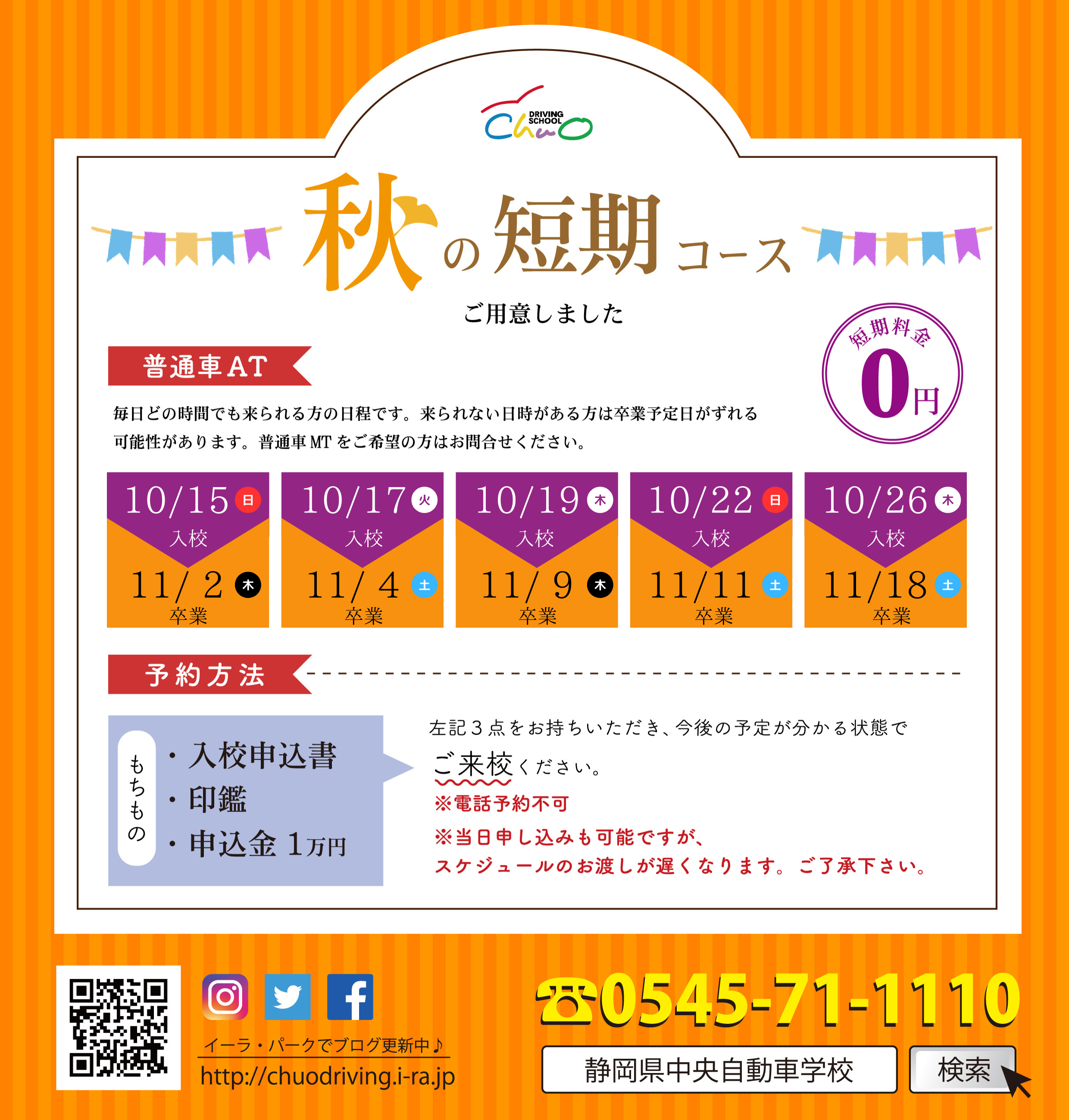★短期コース(AT)10月ご入校分