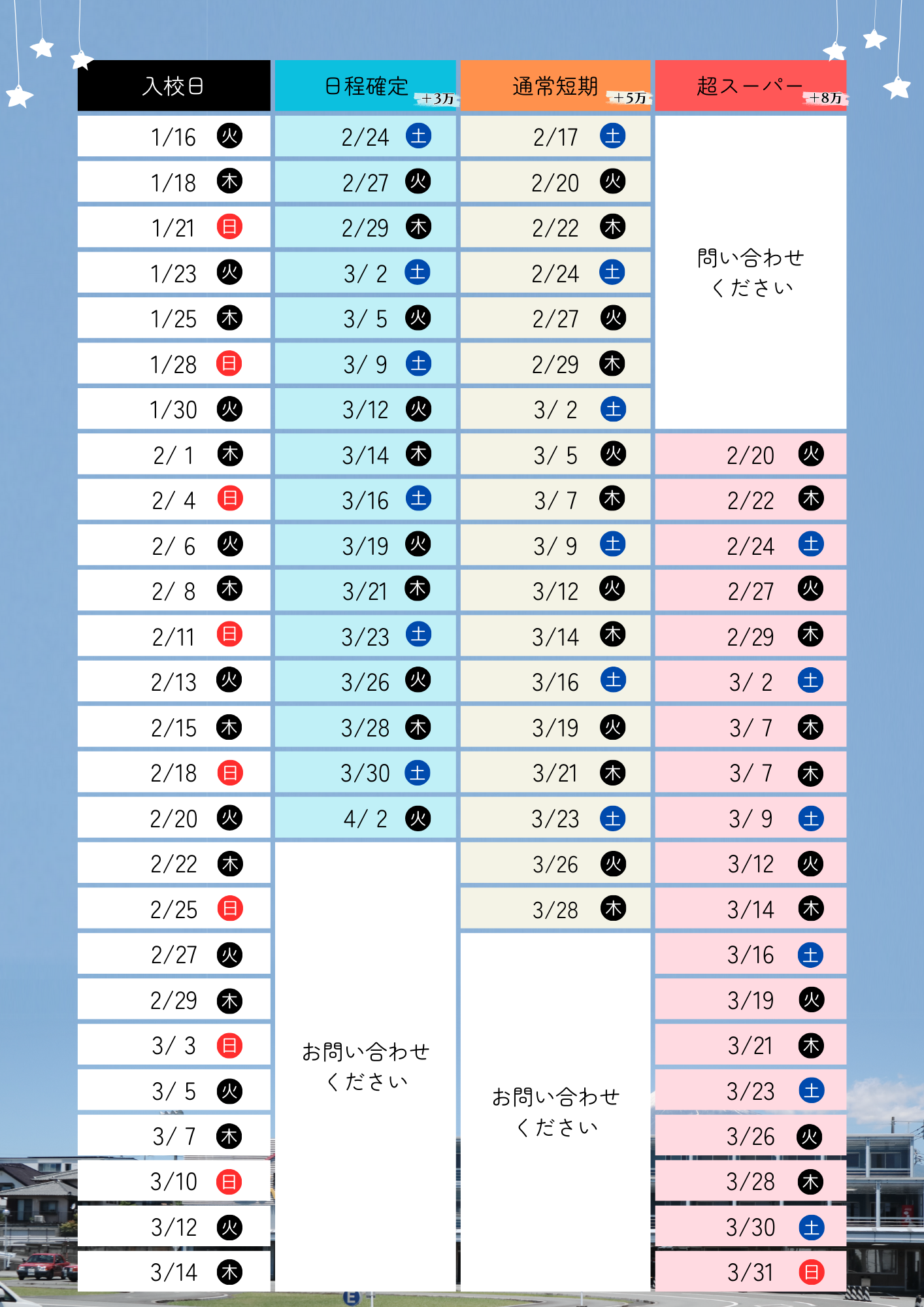 学生通常料金+3万円