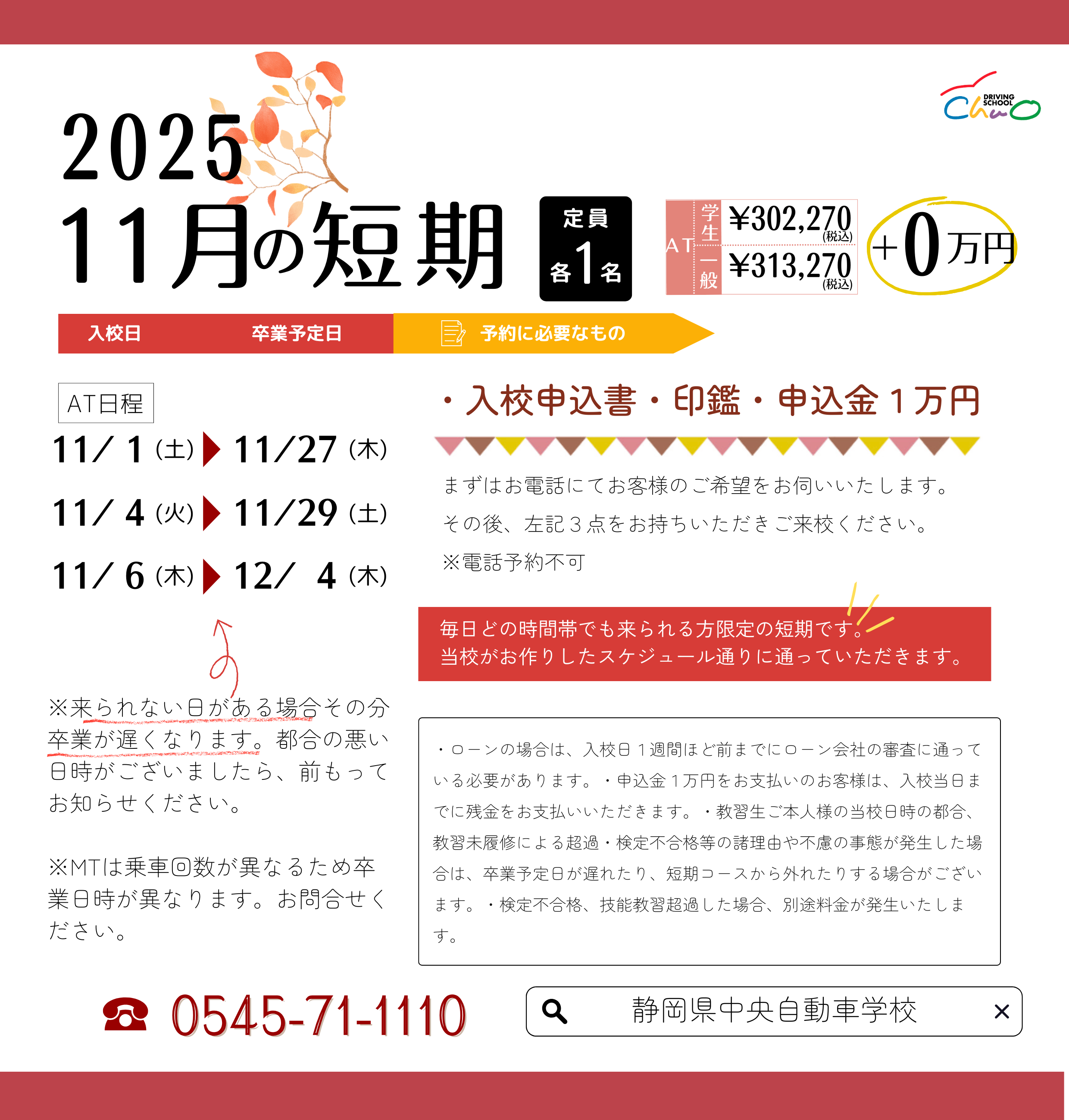 11月の短期日程です。