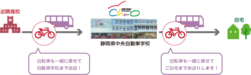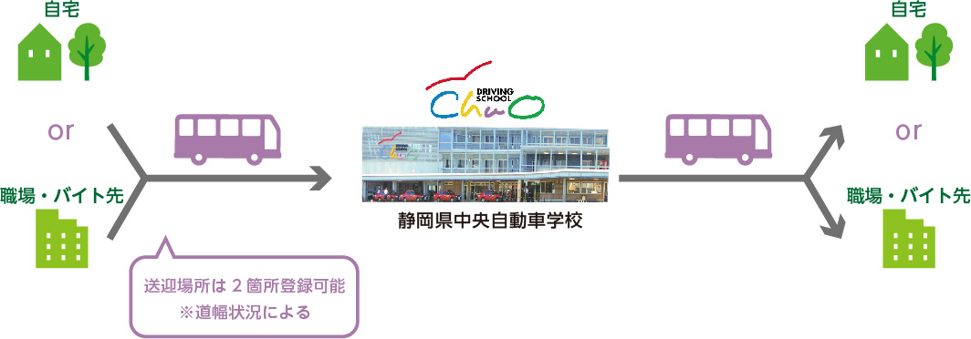 自宅だけでなくバイト先、会社にも送迎いたします。