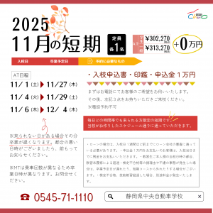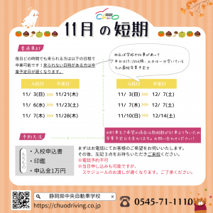 11月の短期日程です。 こちらは毎日どの […]