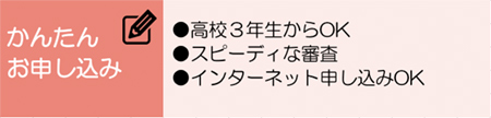 - ※ 18歳未満の方や高校生の方は親権者の代理申し込みが可能です。