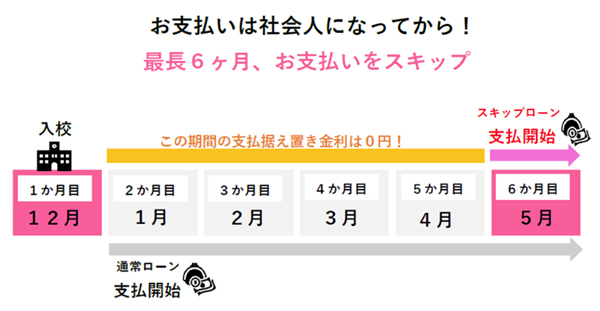 初回お支払い月も最長6か月間、据置き(スキップ)可能!