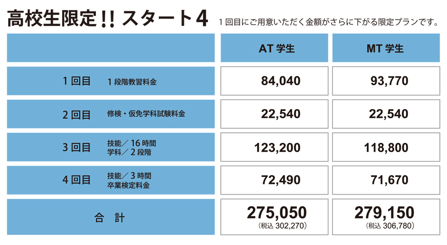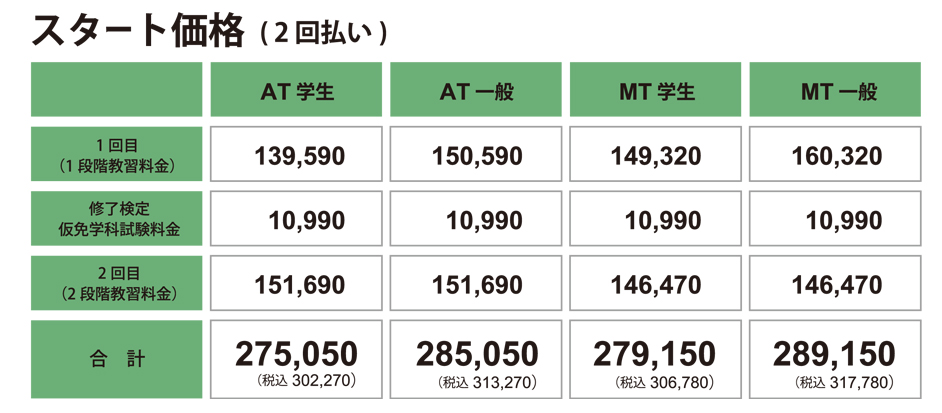 教習料金をまとめてローン一括払い、ご希望に応じて頭金を入れることも可能です。